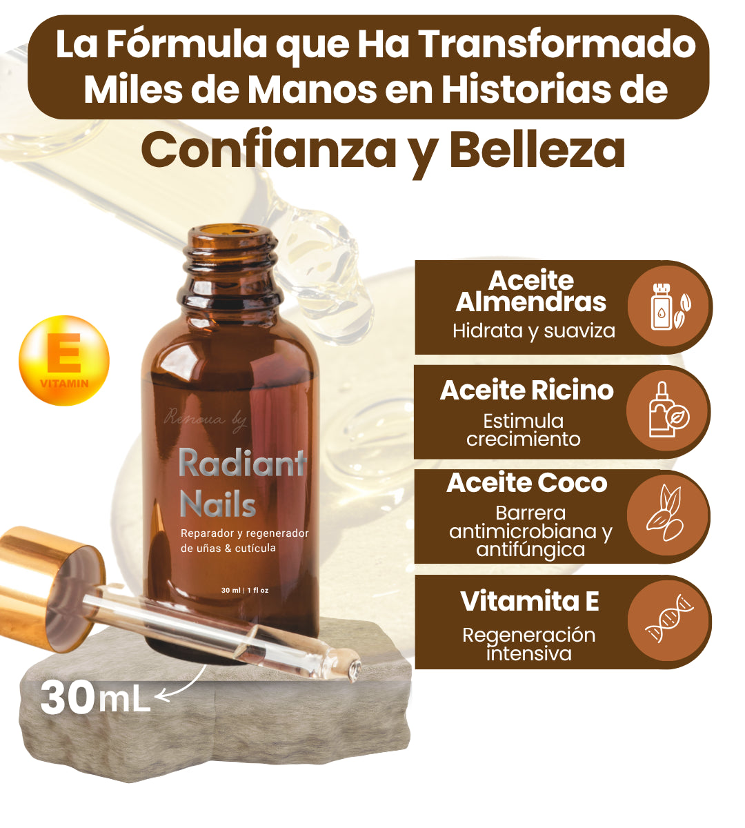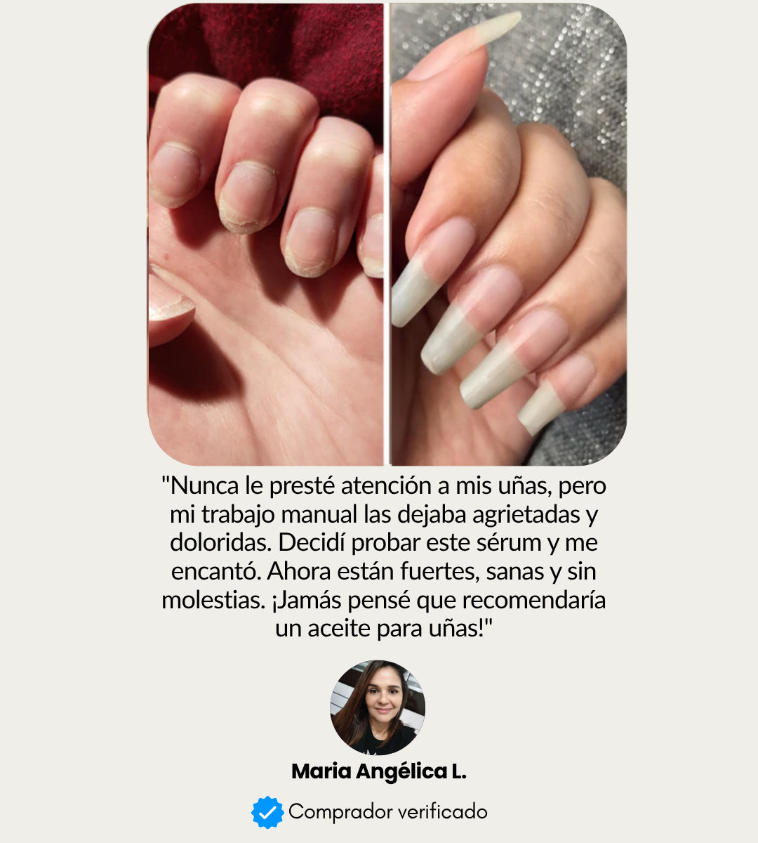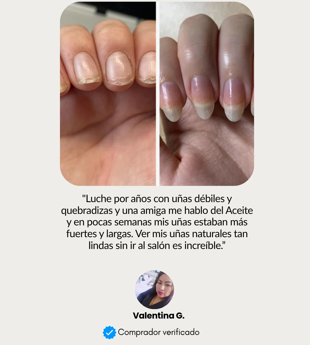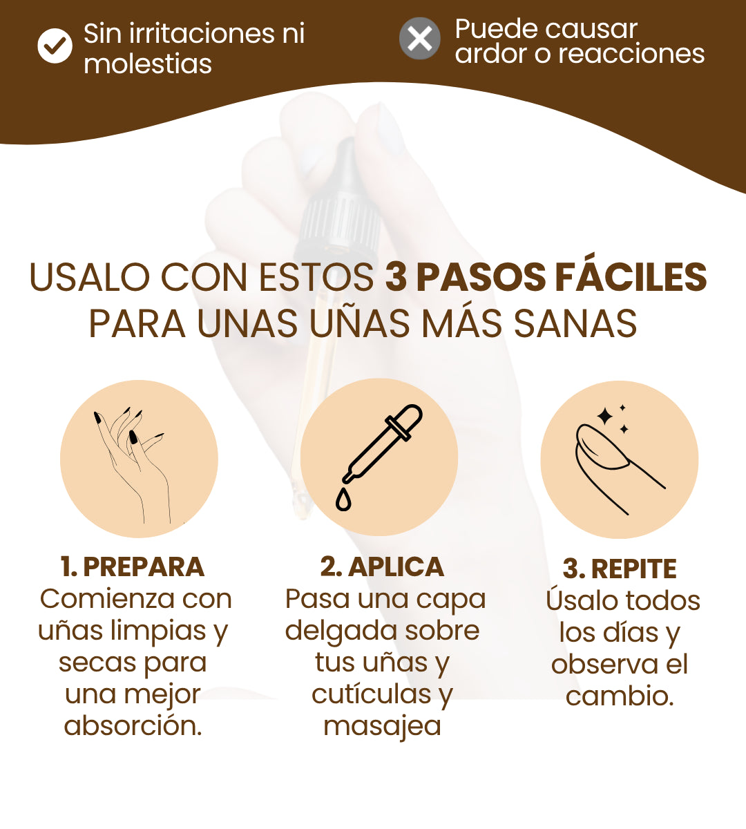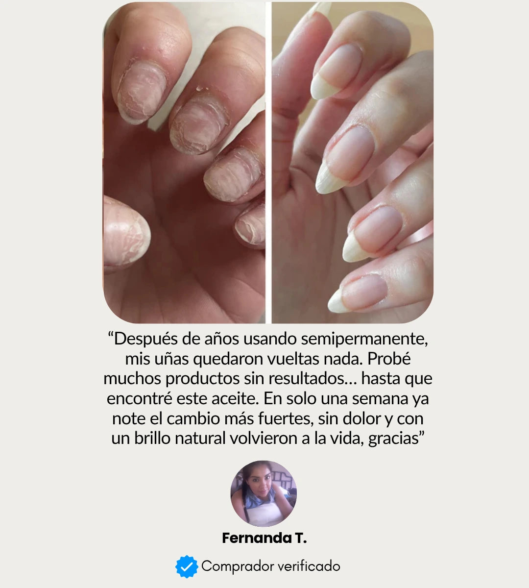 Este producto no sustituye un tratamiento médico antifúngico, pero sus aceites naturales (como el de ricino y almendras) pueden ayudar a mejorar el estado general de la uña. Consulta a tu dermatólogo si tienes una infección activa.