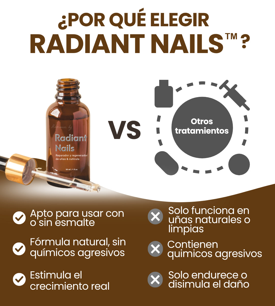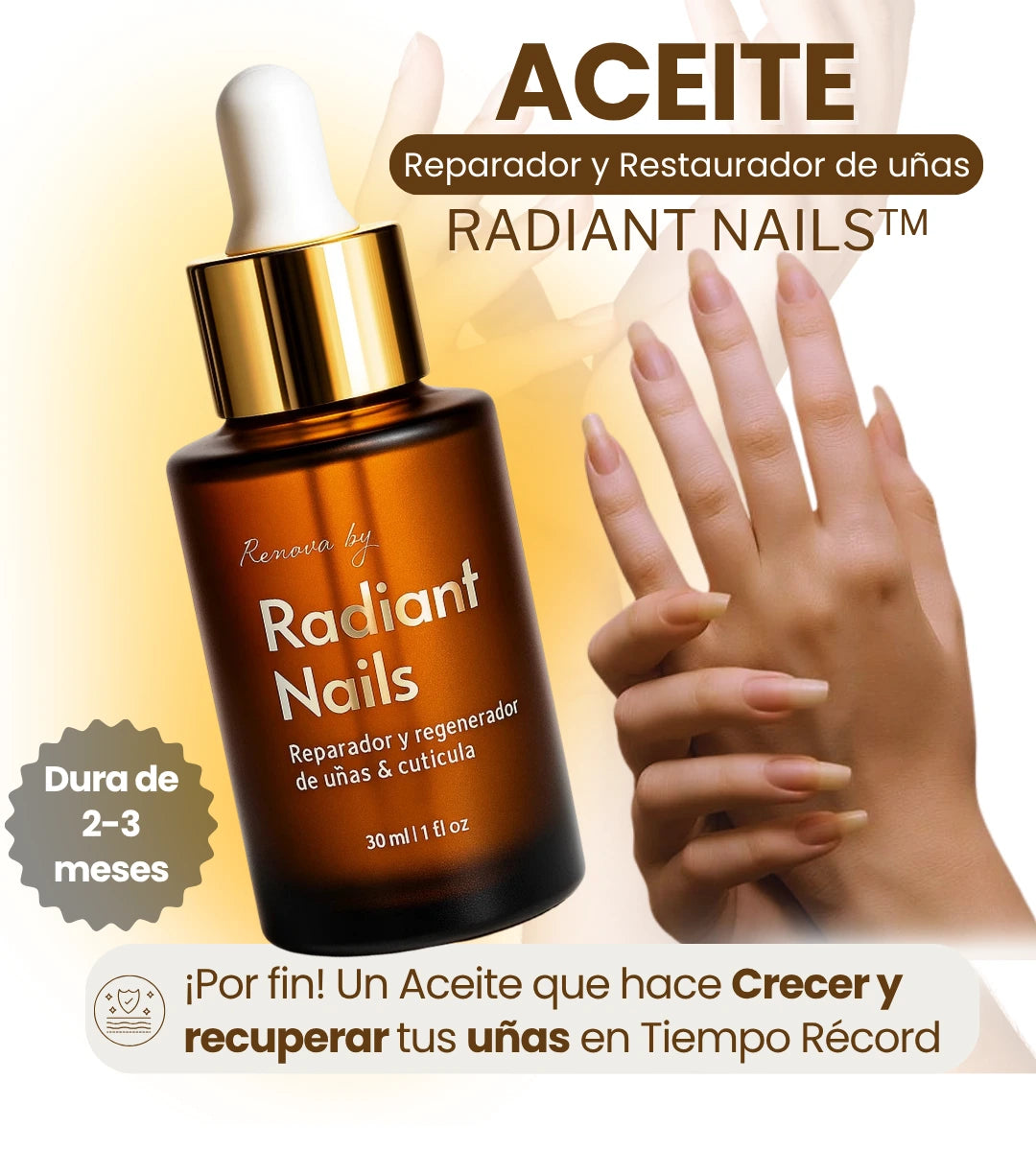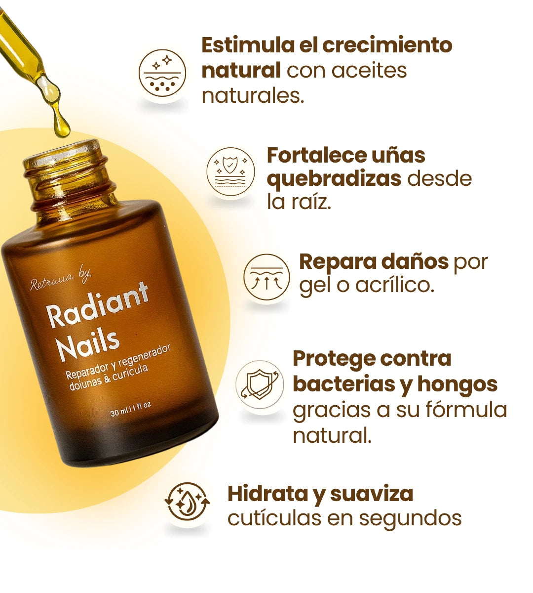 ¡Sí! El aceite está diseñado para actuar con o sin esmalte. Penetra la cutícula y fortalece la uña desde la base, incluso si usas esmalte permanente, gel o acrílico.